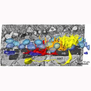Für Wirbeltiere ist die Netzhaut sowohl ein Flächensensor als auch ein Bildgebungscomputer, der das Fenster zur photischen Umwelt öffnet. Für den vergleichenden Morphologen ist sie ein Komplex von Merkmalen, der uns Aufschluss über funktionelle Aspekte, Ökologie, Diversität und Evolution des Sehsinnes anderer Tiere gibt. Derzeit untersuchen wir verschiedene Aspekte der funktionellen Augen-/Netzhautmorphologie ausgewählter Knochenfisch- und Weichtierarten. Ein wichtiger methodischer Ansatz ist die 3D-Rekonstruktion neuronaler Netze (in wesentlichen Teilen) auf Basis von BFSEM-Daten.
