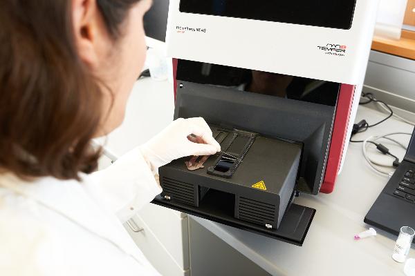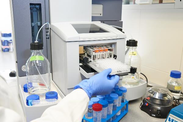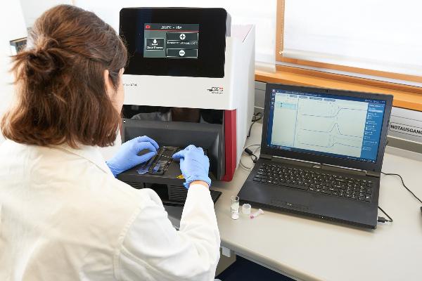 Die Serviceeinheit Bioanalytik stellt das TwoMP (Refeyn) dafür zur Verfügung, mit dem sich durch Detektion der Lichtstreusignale einzelner Moleküle deren Masse präzise bestimmen lässt. Innerhalb weniger Minuten und mit nur minimalen Probenvolumina bei niedrigen Konzentrationen misst das Gerät die Massenverteilung von Biomolekülen und quantifiziert die relative Häufigkeit verschiedener Spezies.